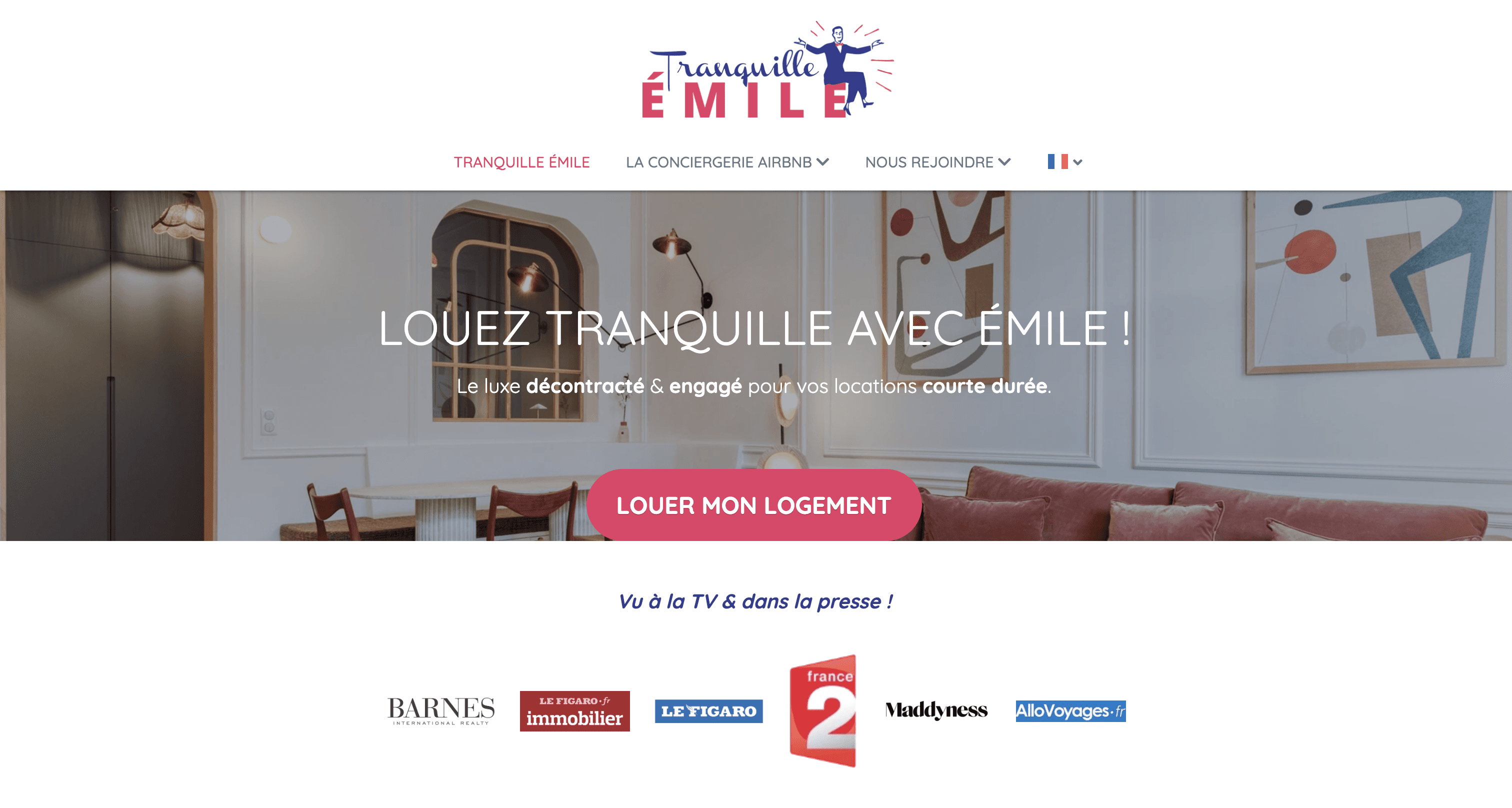 Tranquille Émile est une conciergerie de biens Airbnb (& Booking) qui propose un service de gestions des appartements haut de gamme en région parisienne.